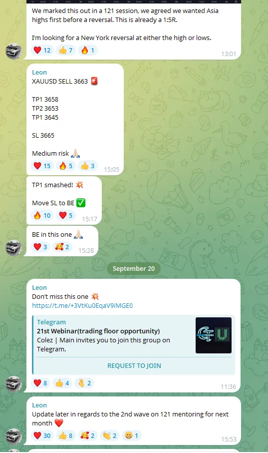 ColezTrades is more than just a signal… ColezTrades is more than just a signal group — it’s a real community focused on growth and learning. Instead of just handing out trade ideas, they actually break down the reasoning and teach the strategies behind each move. The live sessions, running Sunday through Thursday, are packed with value and offer a great chance to ask questions in real time. Best of all, it’s completely free, and you can get involved as much or as little as you like — perfect for any schedule. The teaching approach is laid-back, welcoming traders of all levels, and no question ever goes unanswered. Thanks for your support you and all the team...